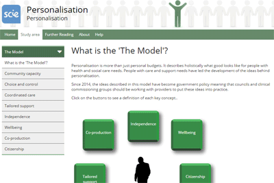 This learning activity is the Social Care Institute for Excellence SCIE's e-learning resource on personalisation. These elearning resources are freely available to all. They provide audio, video and interactive technology to assist in exploring the nature of Personalisation. Resource published in 2011.
