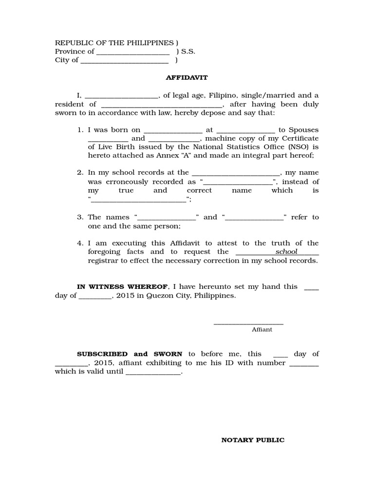 Affidavit Of One And The Same Person Template - It does not only save you from trouble when you find out that you have a different name on an important document but also provides a. Affidavit of one and the same person template rating. I, ________, filipino, single, of legal age, with address at ________, after being duly sworn according to law, hereby depose and state that: Get affidavit of one and the same person. Web sample affidavit of one and the same person. Answer a few questions and your document is created automatically. Easily sign the form with your finger. Affidavit of one and the same person. Start by clicking on fill out the template 2. The affidavit of one and the same template from template.net is a legal document that helps individuals confirm that they have different names, but are the same person. This affidavit serves to establish the identity of the person, especially in cases where discrepancies arise due to name changes or variations in official documents. Affidavit of one and the same person template rating. Web sample format for affidavit for one and the same person. I am executing this affidavit to attest to the veracity of the foregoing statement to. Get affidavit of one and the same person. Under some circumstances, names of the same individual may vary in different documents. Affidavit of one and the same person. Web an affidavit of one and the same person is a legal document used to confirm that an individual is known by different names. My full legal name is [your name], as. Get affidavit of one and the same person. Affidavit of one and the same person. I, the undersigned, ________ [insert your name] ______________ aged ______________ years, _____ [insert religion] _______ by religion, presently residing at ____ [insert address] _____, do hereby solemnly affirm and declare on oath that: I, [your full legal name], residing at [your address], do solemnly affirm. Get affidavit of one and the same person. Web you can create your own affidavit of one and the same person by using our free affidavit of identity template. If you want help with writing your affidavit, we can draft one for you. Start by clicking on fill out the template 2. I, ________, filipino, single, of legal age, with. Get affidavit of one and the same person. Web easily editable, printable, downloadable. Our drafting fee for an affidavit of. Affidavit of one and the same person template rating. You will be able to modify it. Our drafting fee for an affidavit of. Web sample affidavit of one and the same person. Under some circumstances, names of the same individual may vary in different documents. Web ideally, an affidavit for one and the same person should include the following details: Affidavit of one and the same person template rating. Affidavit of one and the same person. Web sample affidavit of one and the same person. Answer a few questions and your document is created automatically. Web sample affidavit of one and the same person. Under some circumstances, names of the same individual may vary in different documents. If you want help with writing your affidavit, we can draft one for you. This affidavit serves to establish the identity of the person, especially in cases where discrepancies arise due to name changes or variations in official documents. That i am the same person who is also known as [list of other names you are known by]. Send filled. I, the undersigned, ________ [insert your name] ______________ aged ______________ years, _____ [insert religion] _______ by religion, presently residing at ____ [insert address] _____, do hereby solemnly affirm and declare on oath that: Under some circumstances, names of the same individual may vary in different documents. Web in this estate is one and the same person as, a beneficiary in. If you want help with writing your affidavit, we can draft one for you. The affidavit of one and the same template from template.net is a legal document that helps individuals confirm that they have different names, but are the same person. Web sample affidavit of one and the same person. Web an affidavit of one and the same person. State of _____ county of _____ personally came and appeared before me, the undersigned authority in and for the jurisdiction aforesaid, the undersigned, _____, who, after being duly sworn on oath, states that he/she is one and the same person as _____. Web sample format for affidavit for one and the same person. Under some circumstances, names of the same individual may vary in different documents. The affidavit of one and the same template from template.net is a legal document that helps individuals confirm that they have different names, but are the same person. Web i submit that _______ _______________and ____________________ is one and the same person i.e., myself. We,__________ and __________, both filipinos, of legal ages, and residents of_________ and ____________, respectively, having been duly sworn in accordance with law, hereby depose and state: I, the undersigned, ________ [insert your name] ______________ aged ______________ years, _____ [insert religion] _______ by religion, presently residing at ____ [insert address] _____, do hereby solemnly affirm and declare on oath that: Our drafting fee for an affidavit of. Document in which the change occurs. Web sample affidavit of one and the same person. Web in this estate is one and the same person as, a beneficiary in this estate is one and the same person as the decedent was also known as the undersigned has personal knowledge of the foregoing fact(s). ★ ★ ★ ★ ★. You will be able to modify it. Get affidavit of one and the same person. Affidavit of one and the same person. Web you can create your own affidavit of one and the same person by using our free affidavit of identity template.Affidavit of One and The Same Person PDF Affidavit Legal Documents