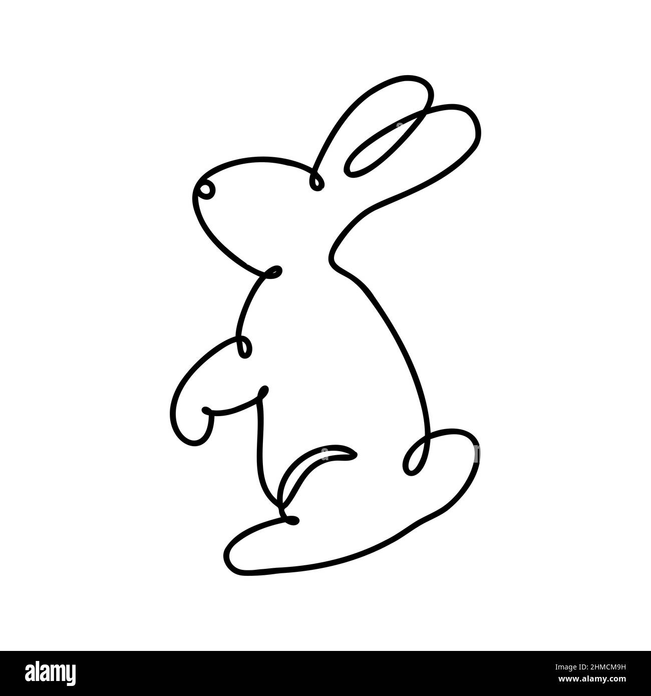 Rabbit handdrawn contour line drawing. Black and white image.Easter
