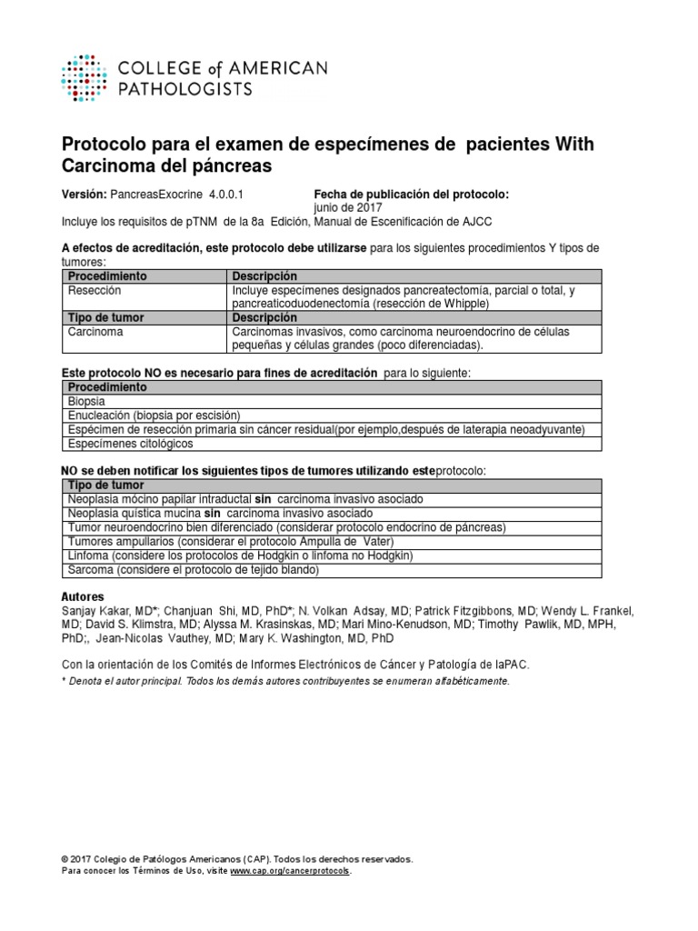 CAP Cancer Protocol Pancreas Exocrine PDF Páncreas Cáncer