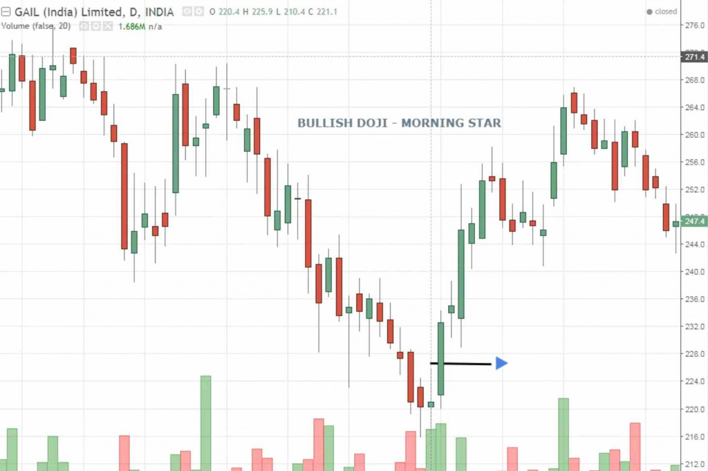 Morning Doji Star candlestick chart pattern. Candlestick chart Pattern
