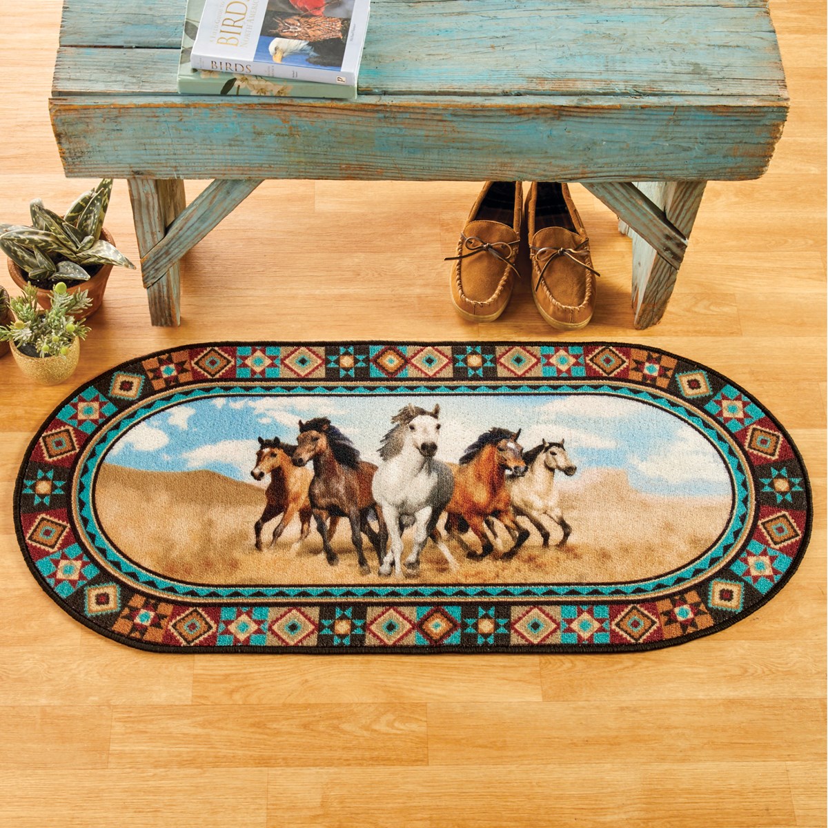 Running Horses Area Rug 4 Sizes & Runner Southwestern Lodge Western