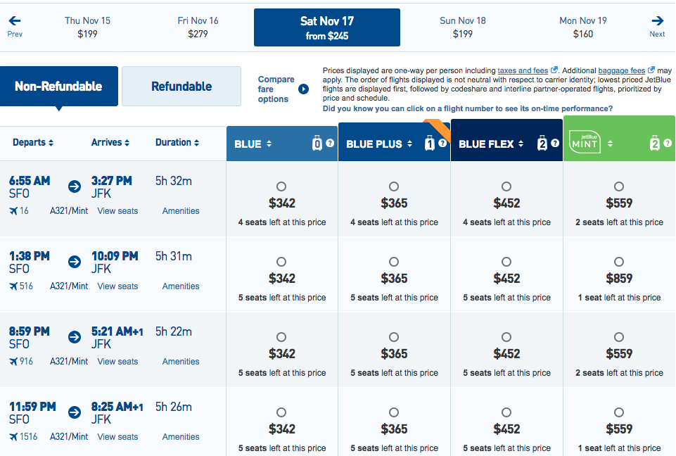 Jetblue Calendar Fare