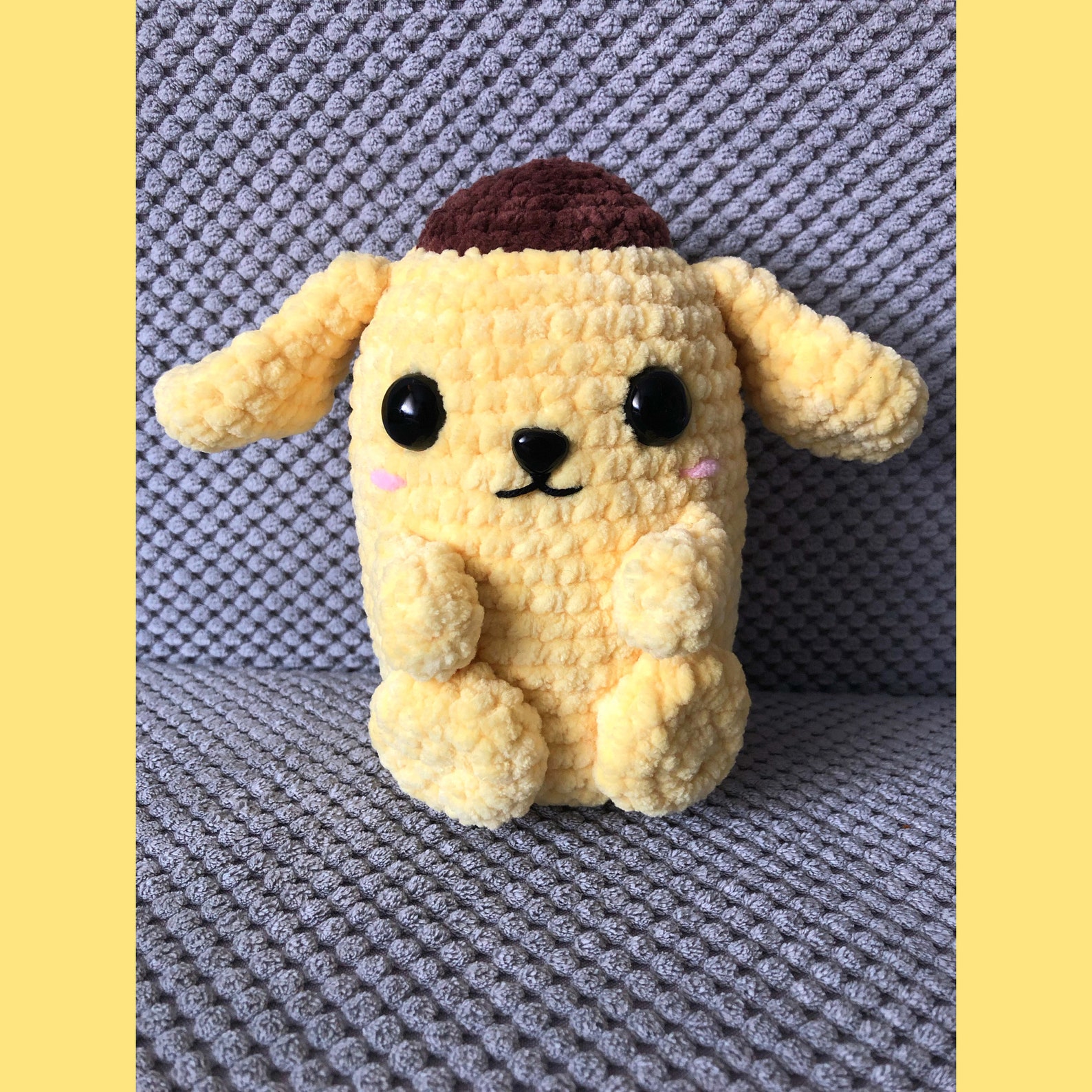 Pompompurin Crochet Pattern - Web pompompurin “purin” the sanrio dog character hat crochet pattern. Prepare to crochet up some sweetness with our newest free pattern — the amigurumi cute pompompurin! Web pompompurin crochet cartoon free pattern. I just finished this character hat for purin (pompompurin) from sanrio this week. #165 | pompompurin amigurumi pattern | (1/2) | how to crochet amigurumi characters | @amivuistudio. Web to crochet pompompurin amigurumi you need: Search patterns with these attributes. This delightful little friend is here to add a touch of charm to your crafting journey. Web how to crochet pompompurin amigurumi:part 1 instructions to do: Pick up the flo of the remaining 6 stitches arms (make 2) using daffodil yellow, mc 6 r1: Supercute amigurumi patterns for sanrio friends by mei li lee. Web pompompurin “purin” the sanrio dog character hat crochet pattern. Let’s pick up our hooks and create some crochet magic together! Susan's family combed cotton 4 ply. Web this pattern is available for free. Web pull out the loop and then using the darning needle. Prepare to crochet up some sweetness with our newest free pattern — the amigurumi cute pompompurin! Let’s pick up our hooks and create some crochet magic together! #165 | pompompurin amigurumi pattern | (1/2) | how to crochet amigurumi characters | @amivuistudio. This delightful little friend is here to. I just finished this character hat for purin (pompompurin) from sanrio this week. Web pull out the loop and then using the darning needle. Pompompurin crochet cartoon free pattern. (i use a lot of red heart saver yarn but any medium to normal weight yarn will do) black yarn for eyes, whisker and mouth line features. Want to learn more. Web pompompurin character amigurumi free crochet tutorial. Size 14 сm, 2.5 mm crochet hook. This pattern is available as a free ravelry download. Buy it now or visit pattern website. Want to learn more about doraemon? Size 14 сm, 2.5 mm crochet hook. The beret and and hat are one piece worked in the round from top to bottom. Web how to crochet pompompurin amigurumi:part 1 instructions to do: Web pompompurin character amigurumi free crochet tutorial. #334 | crochet pompompurin (1/3) | crochet sanrio | amigurumi beginner tutorial | @amivuistudio. #165 | pompompurin amigurumi pattern | (1/2) | how to crochet amigurumi characters | @amivuistudio. I would say this pattern is advanced beginner and up but don’t get discouraged if you are a newbie to crochet. Search patterns with these attributes. Sc around [9] cut the yarn. One of hello kitty’s pals. You can find more crochet crafts like this from the hello kitty crochet: Web to crochet pompompurin amigurumi you need: #165 | pompompurin amigurumi pattern | (1/2) | how to crochet amigurumi characters | @amivuistudio. Buy it now or visit pattern website. Please do not leak or resell as your own!! I am kind of smitten with him. This delightful little friend is here to add a touch of charm to your crafting journey. Pompompurin, who is called purin for short, is a golden retriever dog character first introduced by sanrio, the creators of hello kitty, in 1996. One of hello kitty’s pals. Learn more about this item. #334 | crochet pompompurin (1/3) | crochet sanrio | amigurumi beginner tutorial | @amivuistudio. Please do not leak or resell as your own!! Try this crochet craft and make yourself the sweetest pompompurin friend! Sc around [9] cut the yarn. The patterns are written in english and spanish. Web pompompurin amigurumi crochet tutorial | step by step | free pattern. The beret and and hat are one piece worked in the round from top to bottom. Let’s pick up our hooks and create some crochet magic together! (i use a lot of red heart saver yarn but any medium to normal weight yarn will do) black yarn for. Web pull out the loop and then using the darning needle. Pompompurin has a talent for napping and can make friends with anyone. 56 yards (51 m) sizes available. I hope you enjoy your new project!! Web pompompurin crochet cartoon free pattern. Try this crochet craft and make yourself the sweetest pompompurin friend! Learn more about this item. Doraemon the anime cat characterhat crochet pattern notes. With the yarn and hook size i used, my plushie has a height of around 15cm :) the pattern is intermediate level, requiring knowledge of basic crochet stitches. Web how to crochet pompompurin amigurumi:part 1 instructions to do: I would say this pattern is advanced beginner and up but don’t get discouraged if you are a newbie to crochet. Susan's family combed cotton 4 ply. Web to crochet pompompurin amigurumi you need: One of hello kitty’s pals. Please do not leak or resell as your own!! Sc around [9] cut the yarn.