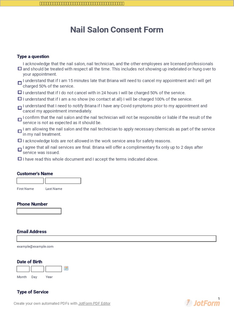 Fillable Online Nail Salon Consent Form TemplateJotForm Fax Email Print