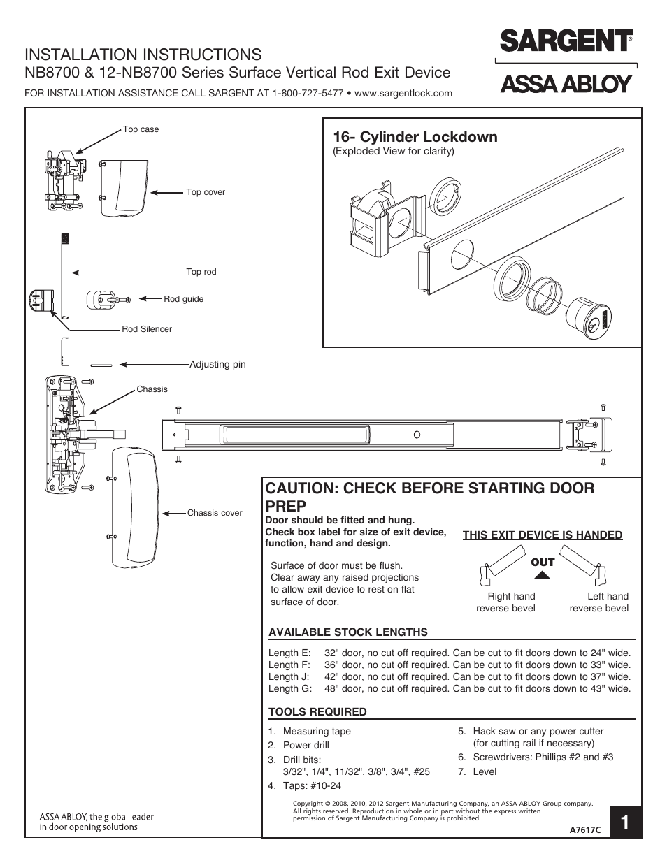 Sargent 8500 Series Narrow Design Rim Type Exit Device Installation