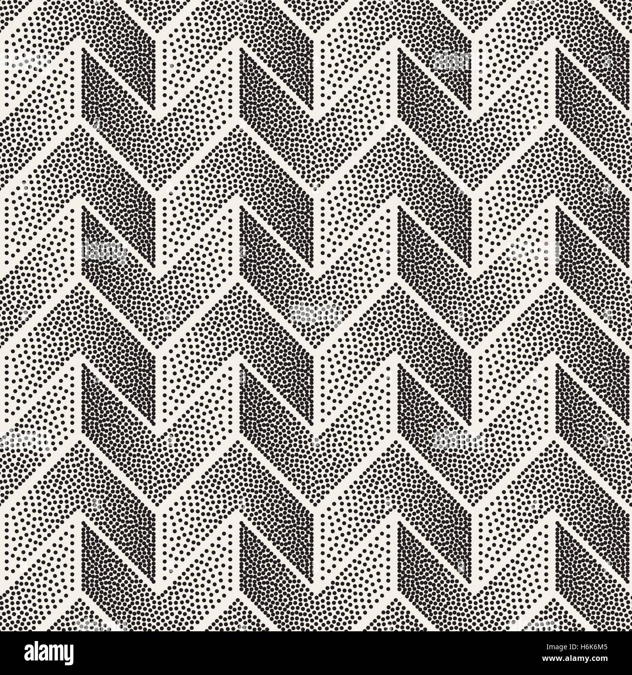 Vector Seamless Black and White Stippling Chevron Shapes Pattern Stock