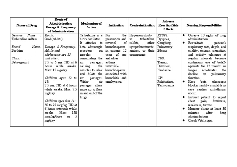 Medication Mariah Dickerson Student Name Terbutaline Medication Review Module Chapter And |.