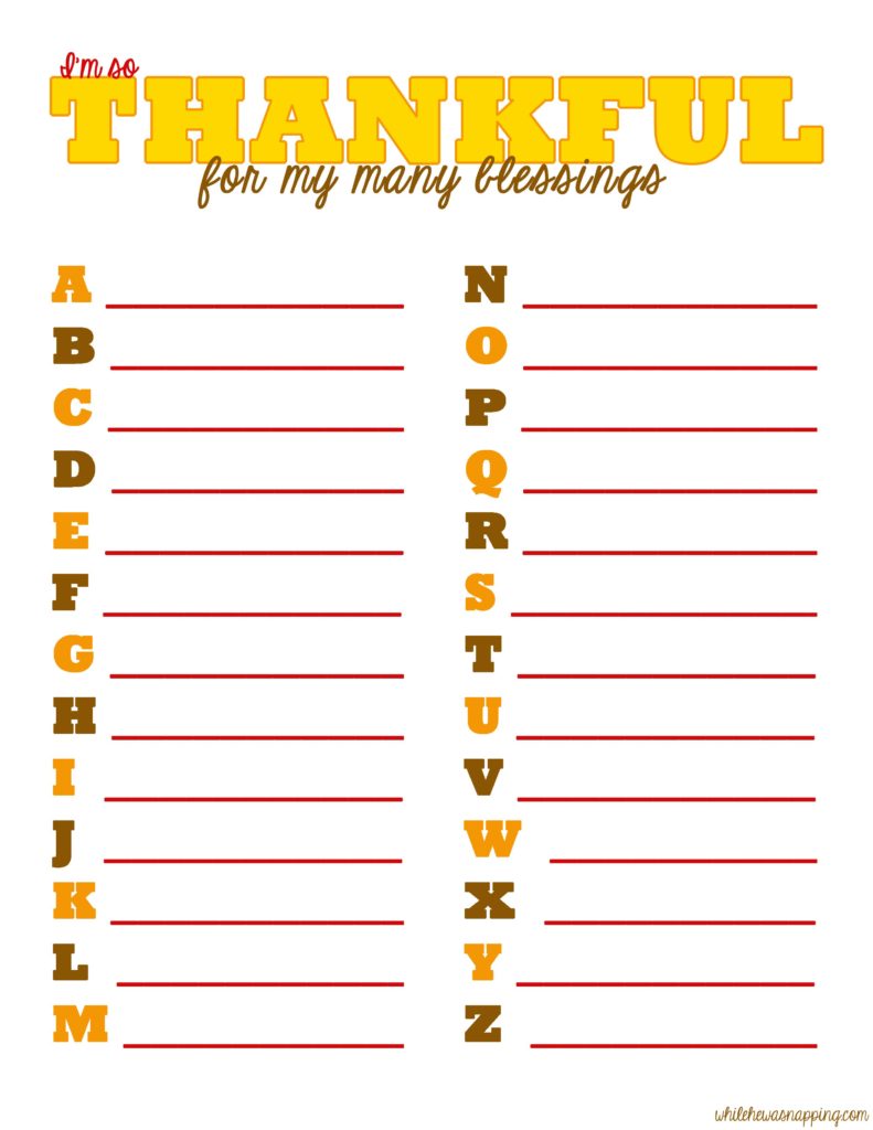 Thankful for My Many Blessings ABC Printable While He Was Napping