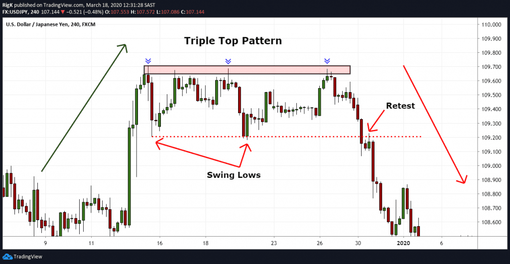 Web Triple Tops Consist Of A Left Swing High Price, Middle Swing High Price Peak, Right Swing High Price Peak, And A Support Level.