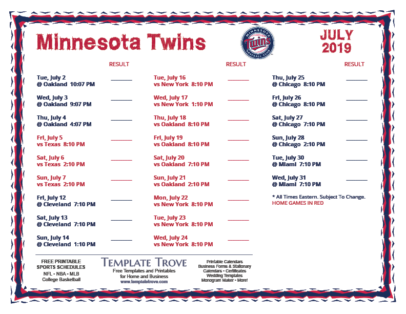Twins Schedule 2023 Printable Printable World Holiday