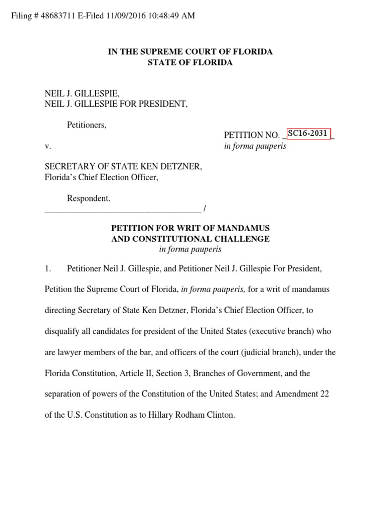 Petition for Writ of Mandamus SC162031 United States Constitution